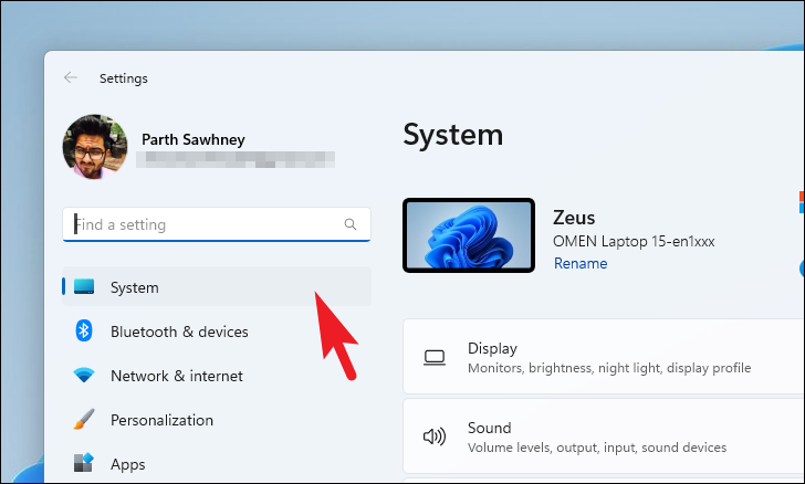 Step 2: In the Settings window, ensure that the System tab is selected on the left sidebar.
