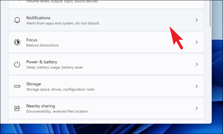 Step 3: On the right pane, click on the Notifications option to access the notification settings.