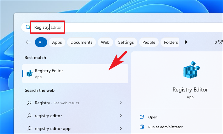 Step 1: Open the Start menu, type Registry Editor in the search bar, and select the Registry Editor app from the results.
