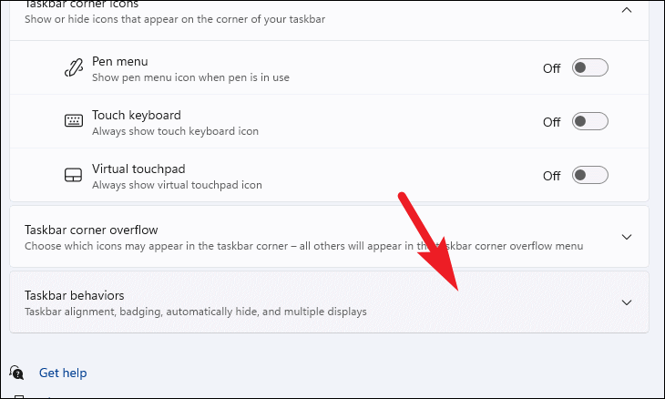 After that, locate and click on the ‘Taskbar behaviours’ tab to expand the settings.