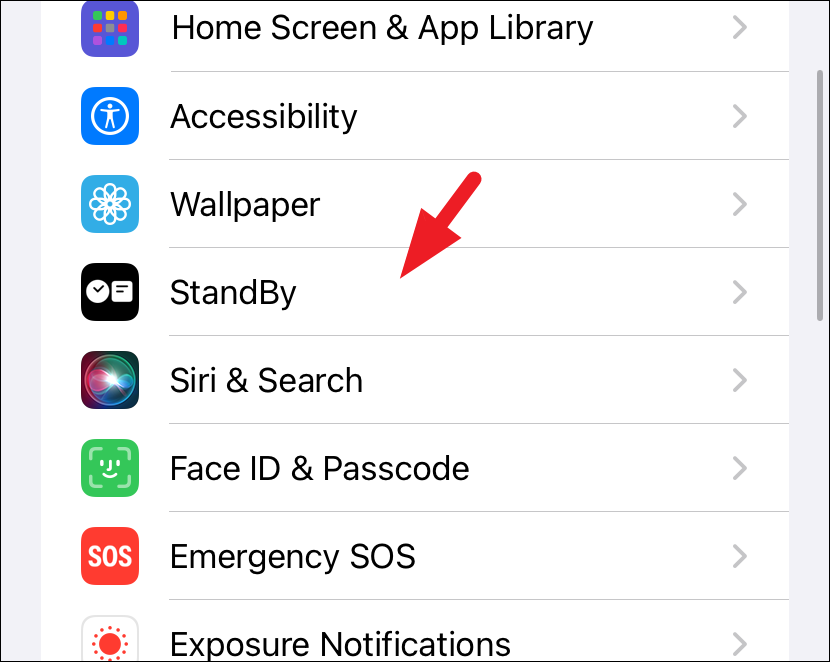 - Tap ’StandBy’ in settings.