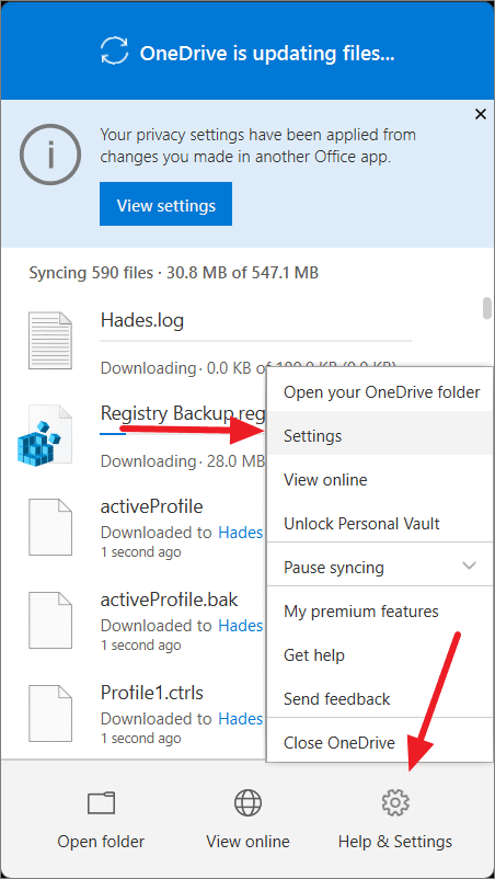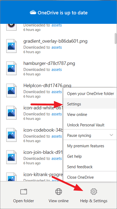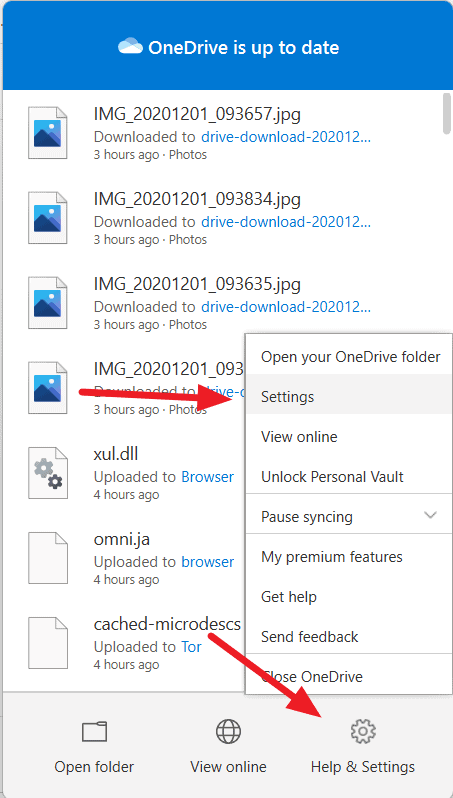 Step 2: Click on Help & Settings, hover over Pause syncing, and select the desired duration (2, 8, or 24 hours).