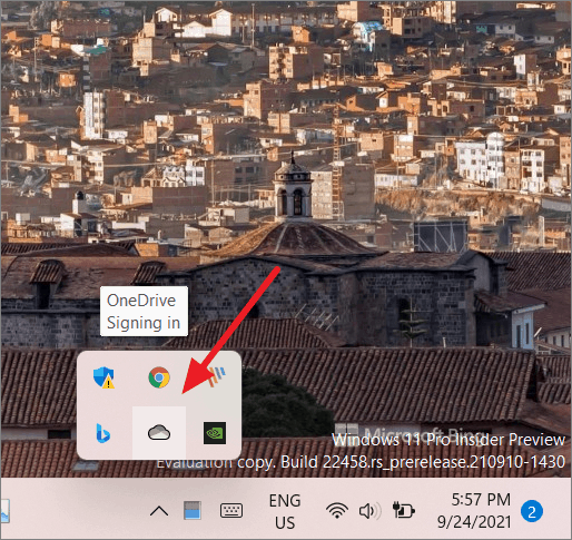 Step 1: Click on the OneDrive icon in the taskbar corner overflow area.