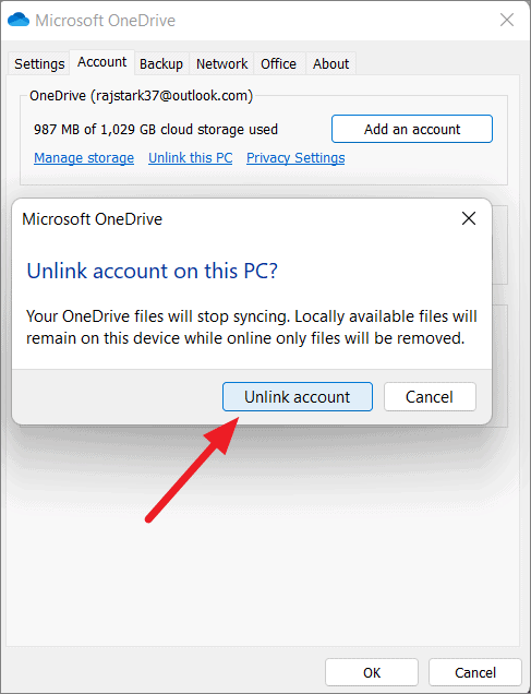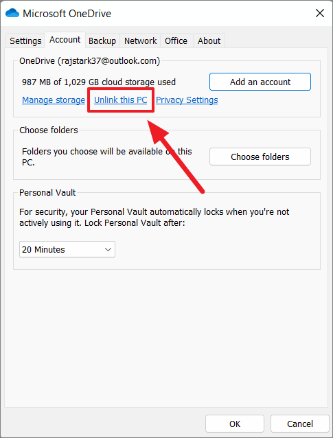 Unlink OneDrive from Your Windows 11 PC