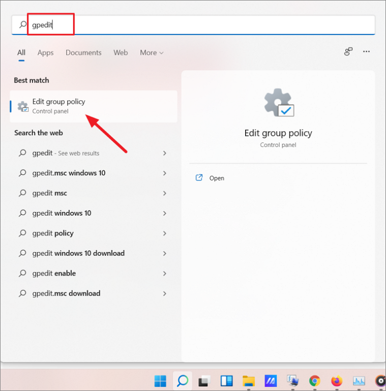Step 1: Click the Start menu, type Group Policy Editor or gpedit.msc, and select Edit group policy from the search results.
