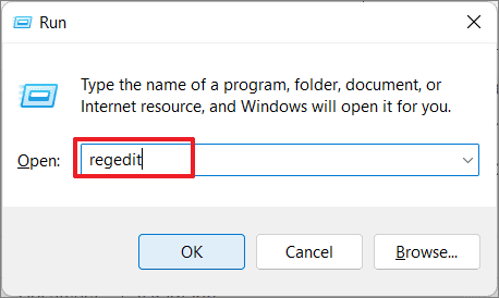 Step 1: Press Windows + R to open the Run dialog box, type regedit, and press Enter to launch the Registry Editor.