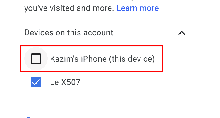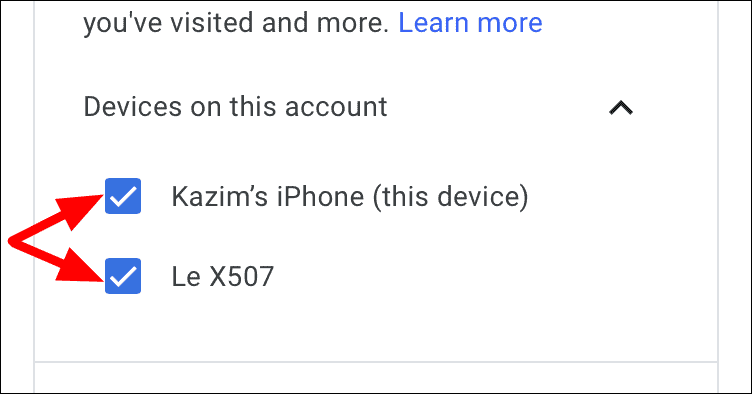 You will now find a list of devices linked to this account. Next, tap on the checkbox for the device for which you want to disable ‘Location History’.