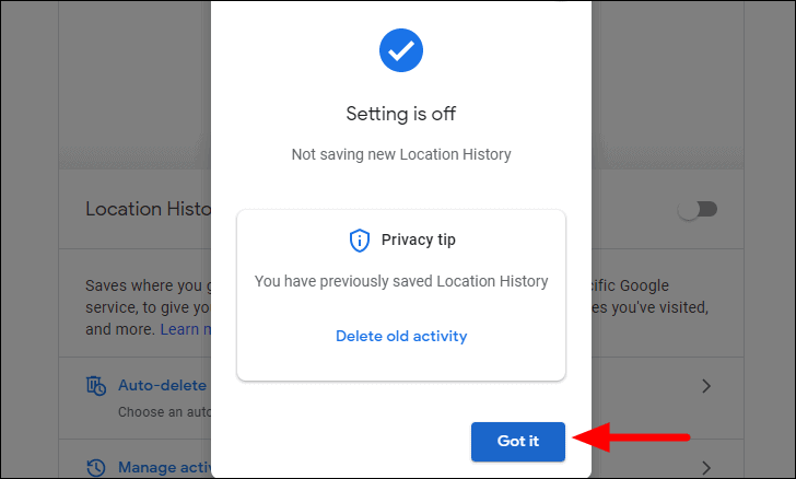 You will now receive a confirmation box that the setting is turned off. Finally, click on ‘Got it’ at the bottom.