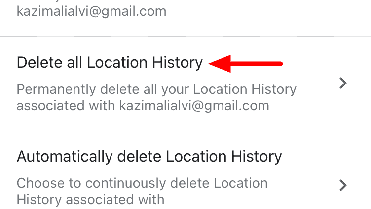 Now, scroll down and locate ‘Delete all Location History’, and tap on it.