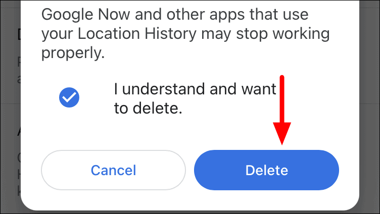 The Location History for the selected date will now be deleted.