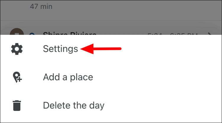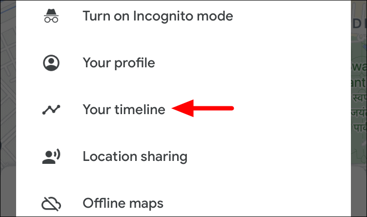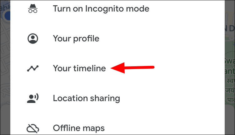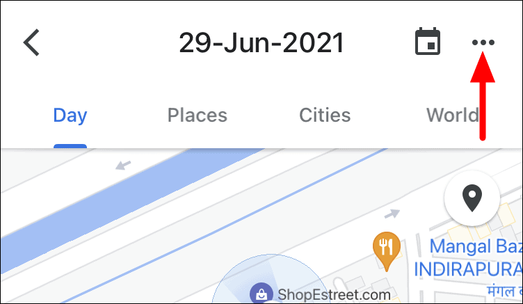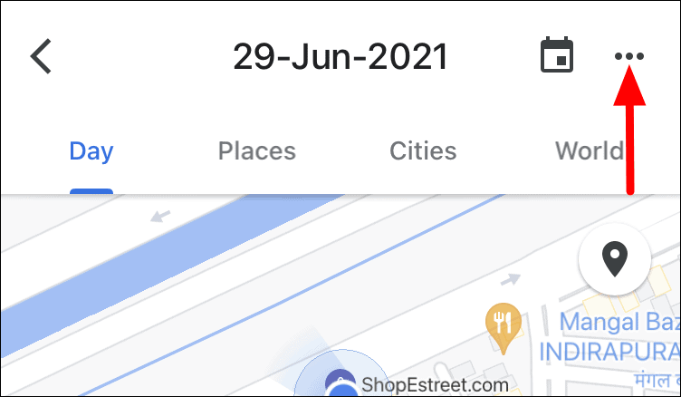 To delete Location History for a particular time range, tap on the ellipsis at the top-right corner of the ‘Timeline’ screen.