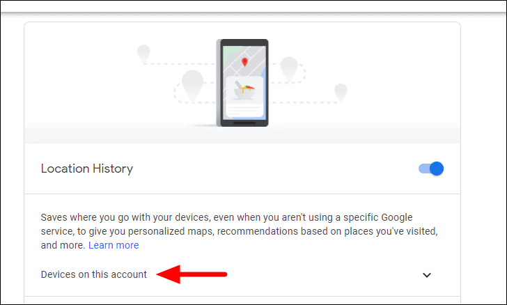 To disable Location History for a particular device, click on the ‘Devices for this account’ option.