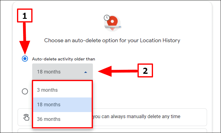 On the next screen, select the checkbox for ‘Auto-delete activity older than’, click on the drop-down menu under it, and then select either of the three options.
