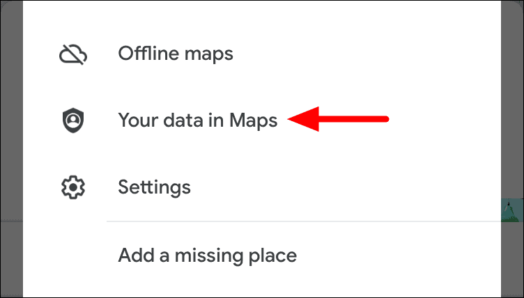 A menu with multiple options will appear, tap on ‘Your data in Maps’.