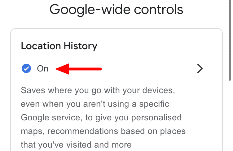To disable Location History for the account and all linked devices, scroll down, locate ‘Location History’, and then tap on the ‘On’ option under it.
