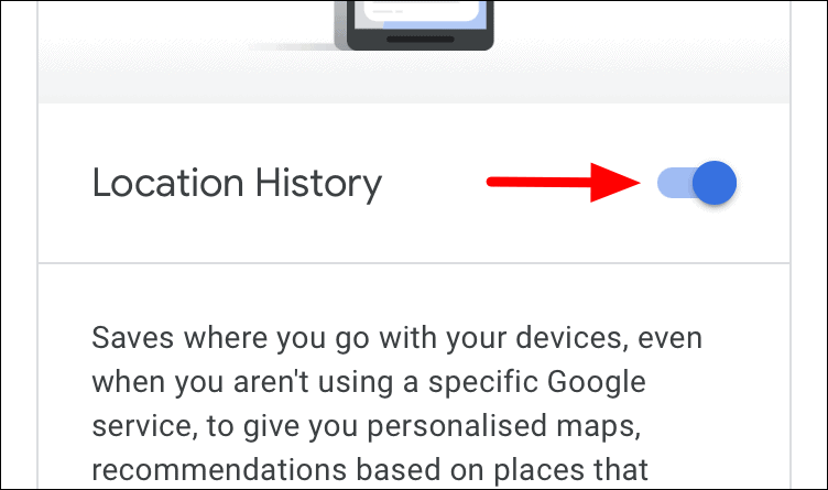 Next, tap on the toggle next to ‘Location History’.