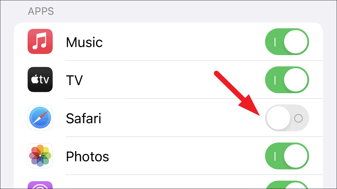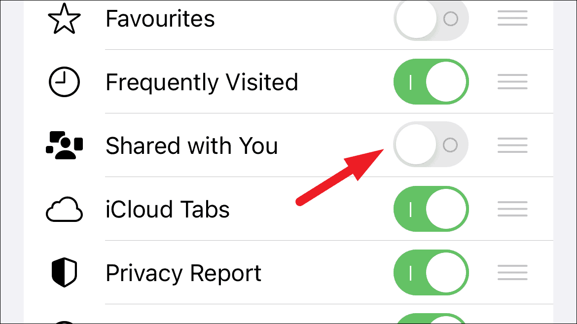 Step 4: Toggle off the switch next to Safari to disable shared links from appearing in the browser.