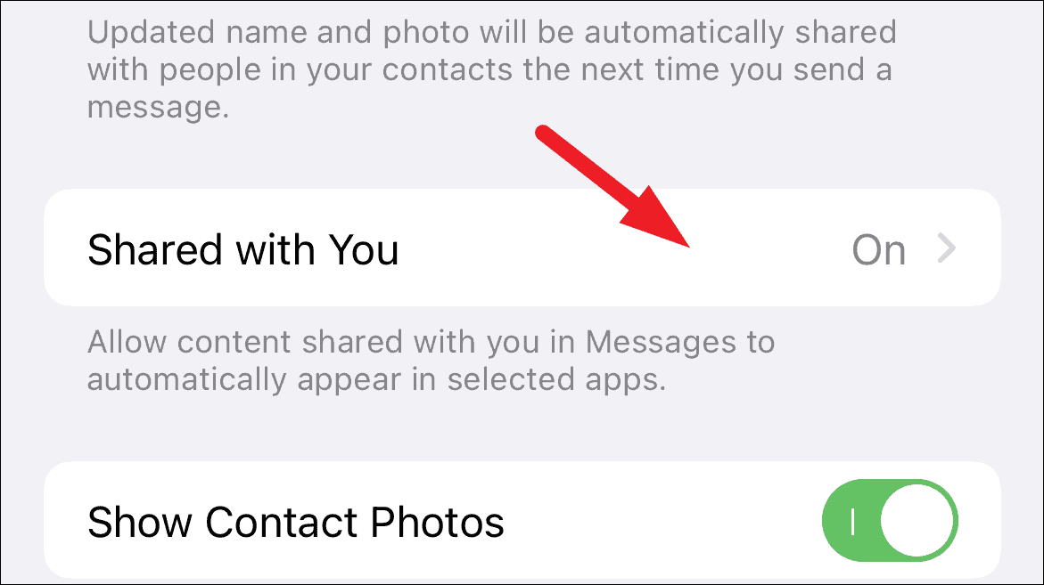 Step 3: In the Messages settings, select Shared with You.