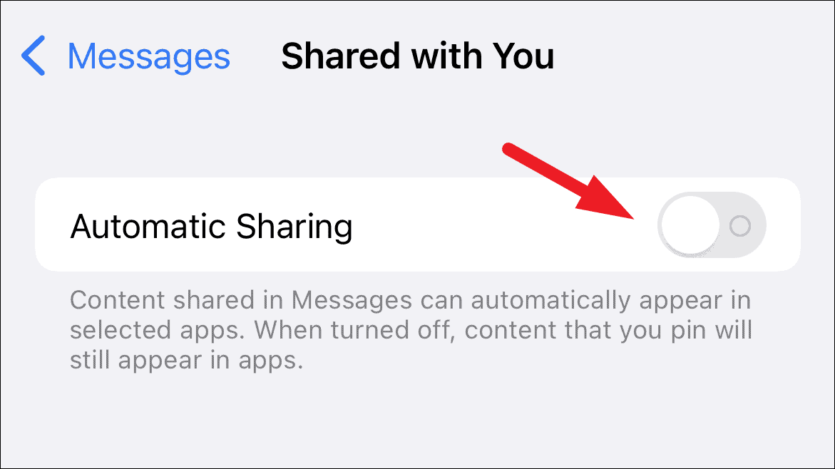 If you wish to disable the 'Shared with You' feature across all supported apps, you can turn off the Automatic Sharing option at the top of the same screen.