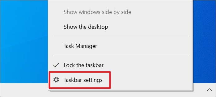 To do it from the Taskbar settings, simply right-click on any empty space on the taskbar and select ‘Taskbar settings’ from the menu that shows.