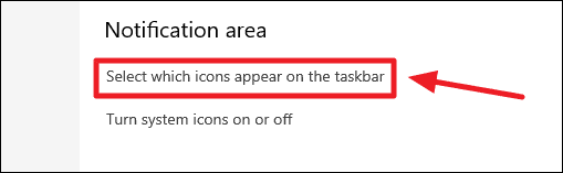 The Windows 10 Taskbar settings window will open. Here, scroll down to the ‘Notification area’ section and click on the ‘Select which icons appear on the taskbar’ option.
