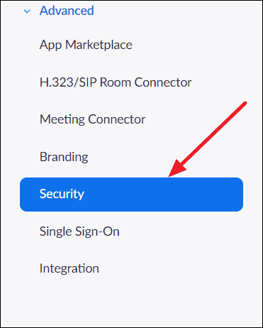 Select the ‘Security’ option under the expanded options from the ‘Advanced’ section. This will open a new page that comprises all the settings related to the secuirty of all user accounts within your organization.