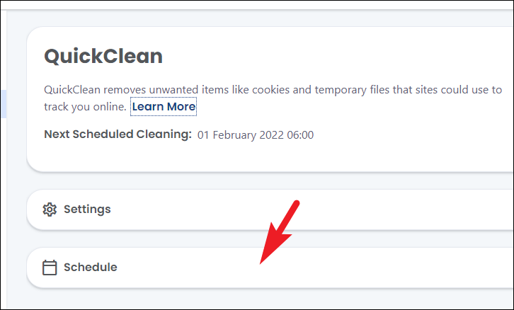 Step 7: For other features like the Tracker Remover, scroll down to the Protect yourself on the web section in the sidebar and click on Tracker remover. Then, select Schedule, choose Do not schedule, and click on Apply to disable it.