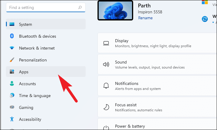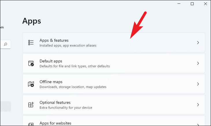 Apps & featureson the right pane.