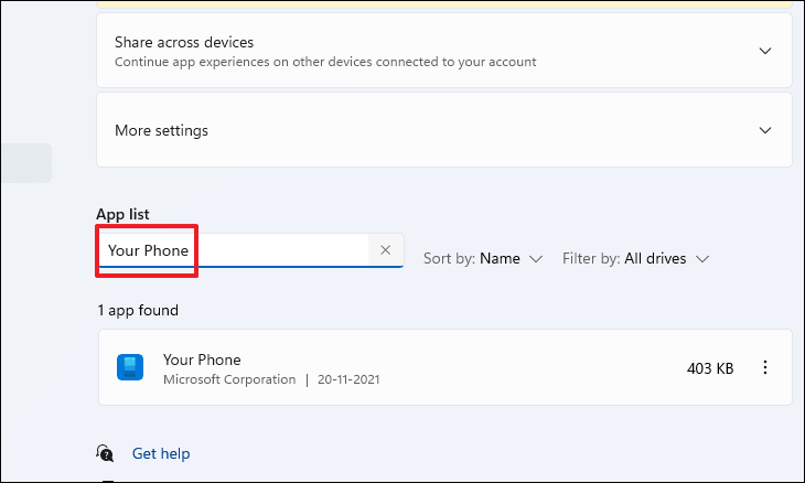Disable the Your Phone app from settings