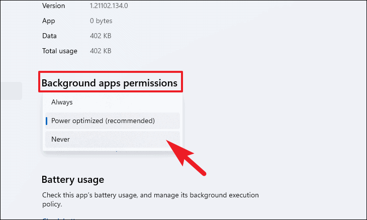 - Under Background apps permissions, click the dropdown menu for