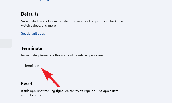Terminateto stop the app and its processes.