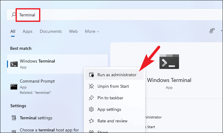 Windows Terminaland selectRun as administratorfrom the context menu.