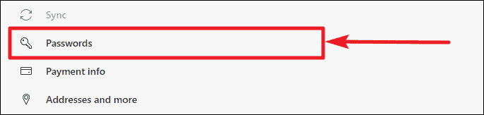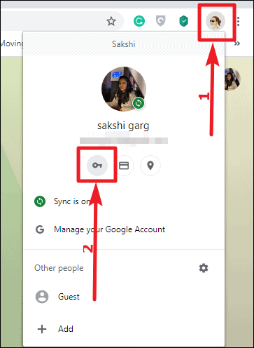 Alternative method: You can quickly access the password settings by clicking on your profile icon next to the address bar and selecting the key icon, which represents Passwords. This shortcut takes you directly to the Passwords settings page.