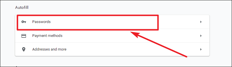 Step 2: In the Settings page, look for the Autofill section and click on Passwords. This will open the password management settings where you can control how Chrome handles your passwords.