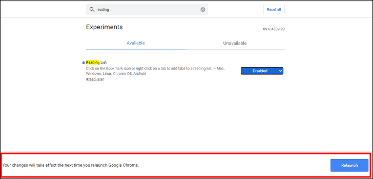 If you ever wish to restore the 'Reading List' feature, simply return to the Chrome Flags page and set the 'Reading List' flag back to 'Default' or 'Enabled'.