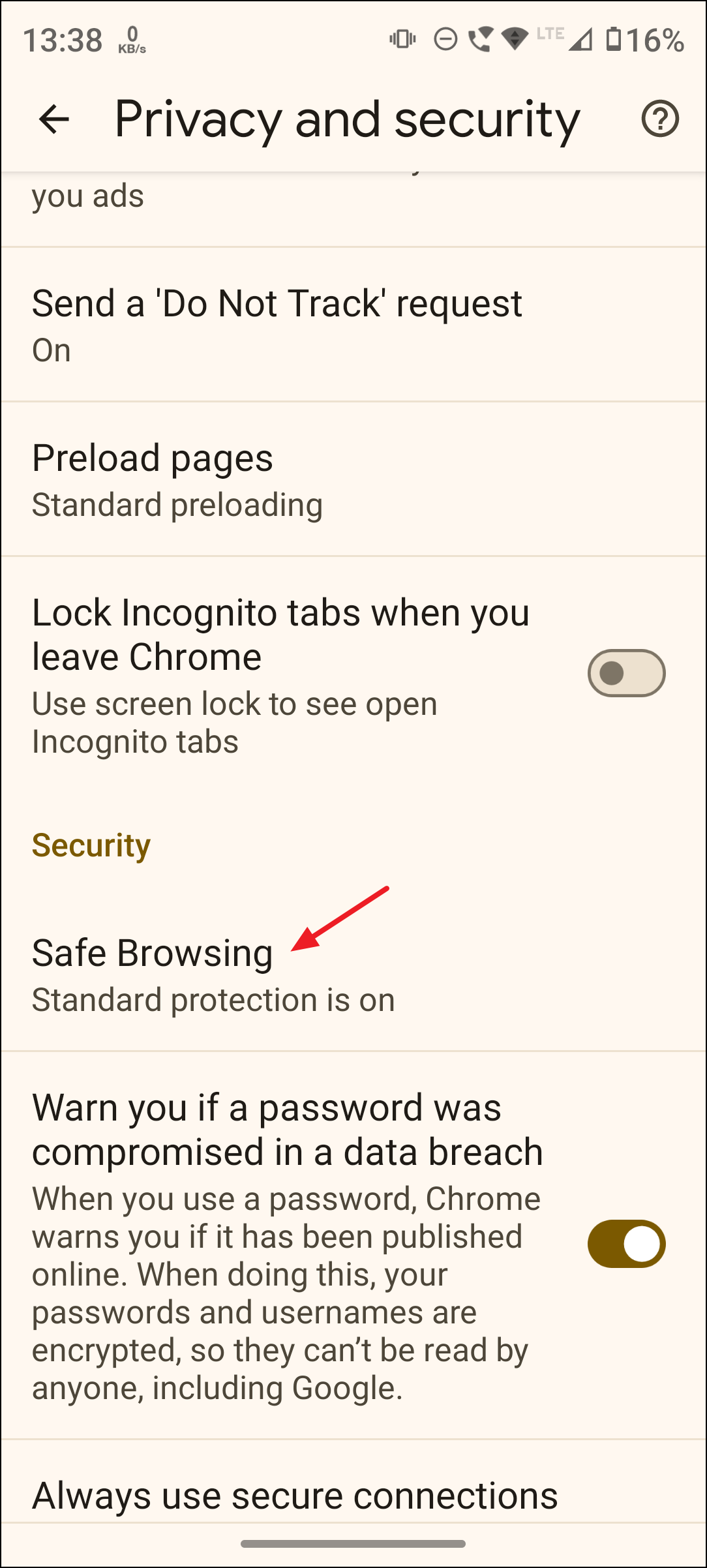 Step 3: Tap Safe Browsing to view all safe browsing options.