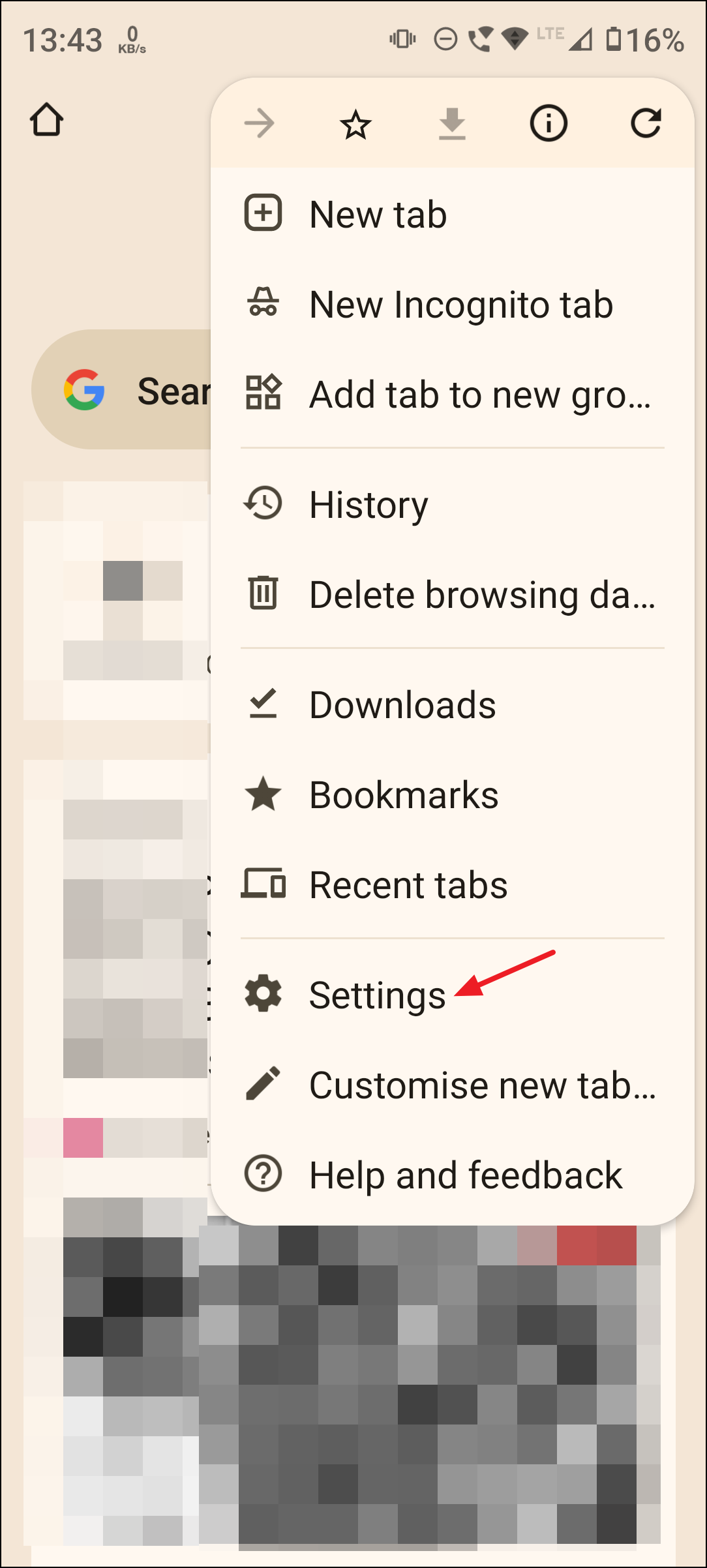 Step 1: Open the Google app or Chrome browser on your mobile device. Tap the three dots (menu) in Chrome and select Settings to open Chrome settings.