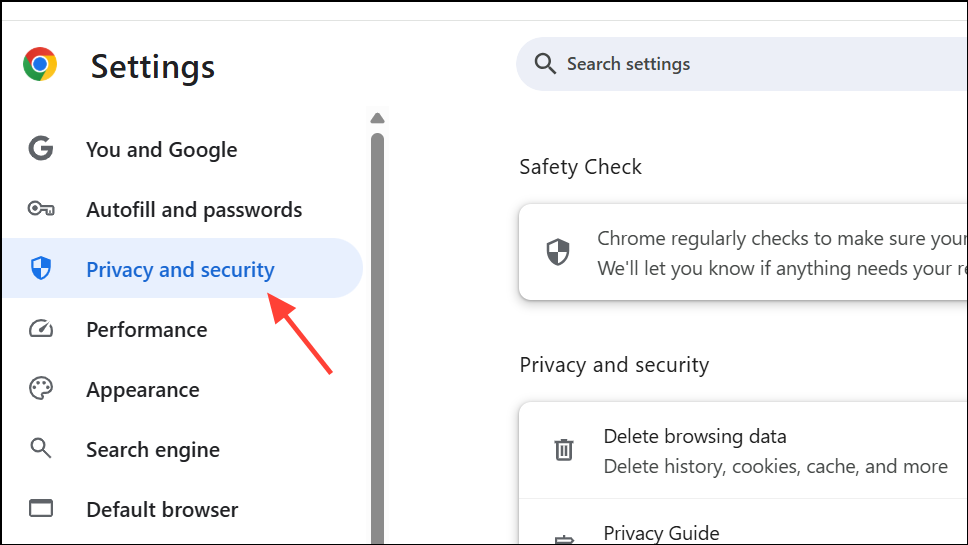 Step 2: Scroll down and click Privacy and security in the sidebar. This section contains Chrome’s security controls.