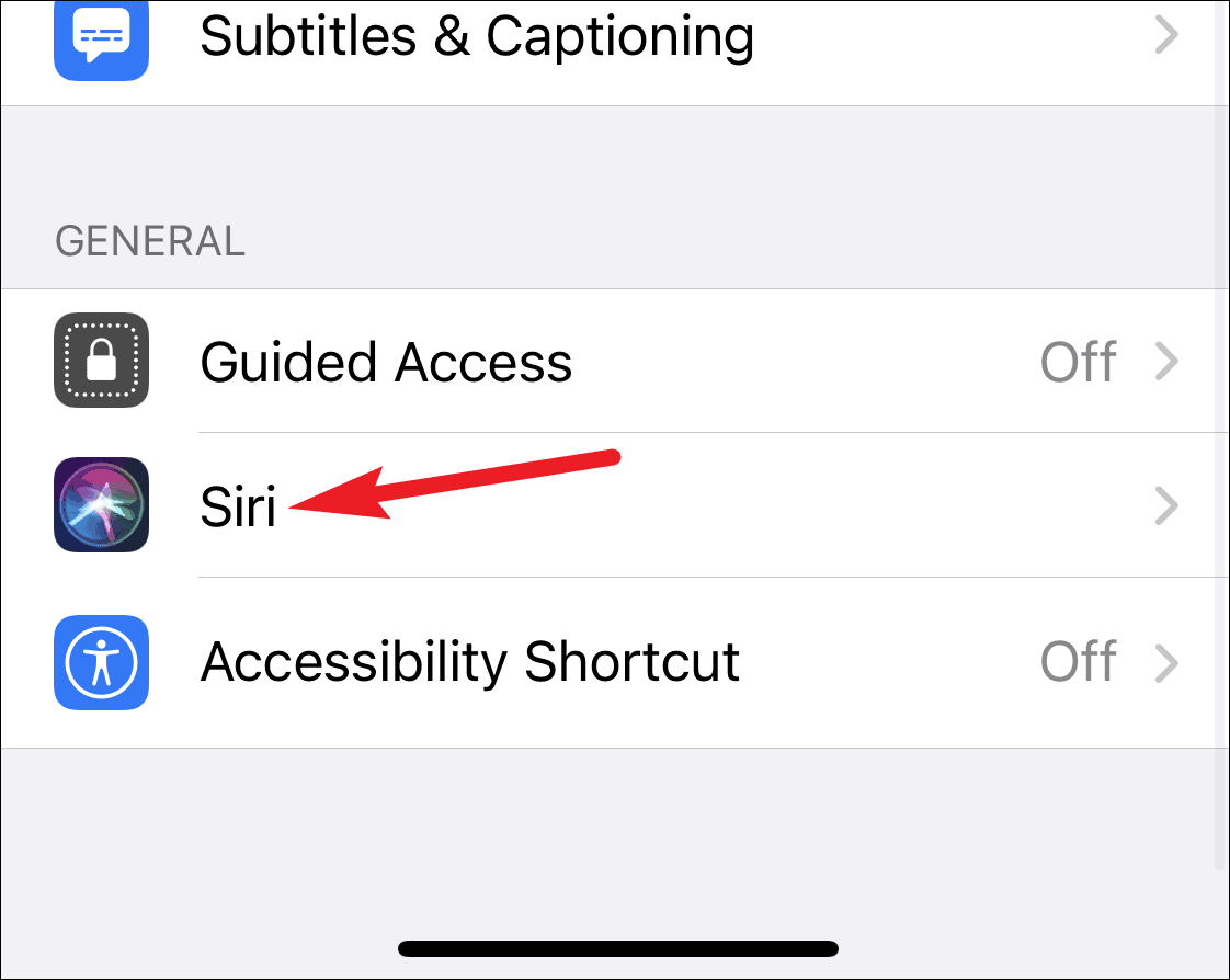 Scroll all the way down in accessibility settings, and tap on ‘Siri’.
