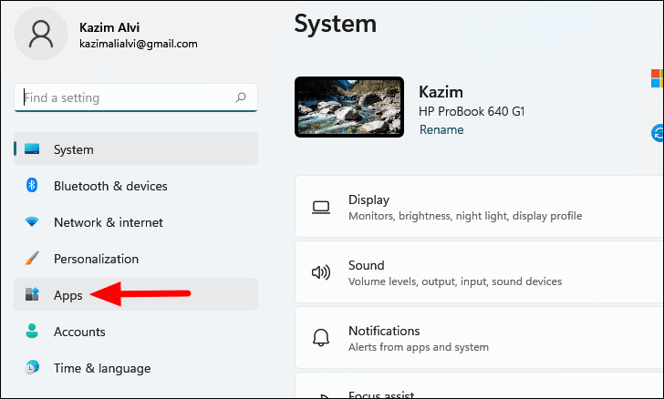 - In the Settings window, click on the Apps tab in the left sidebar.