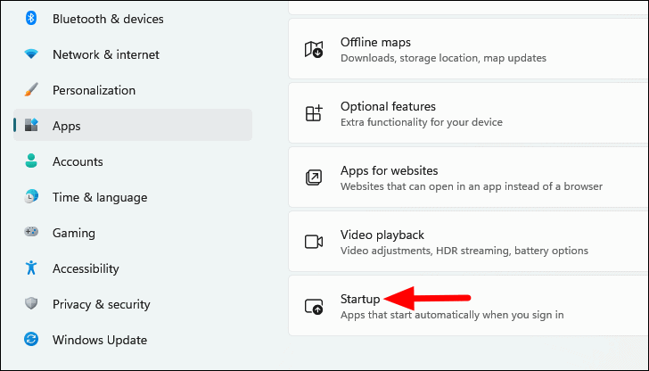 - Select Startup from the options on the right side.