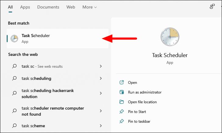 - Press Windows + S to open the search bar, type Task Scheduler, and select it from the search results.
