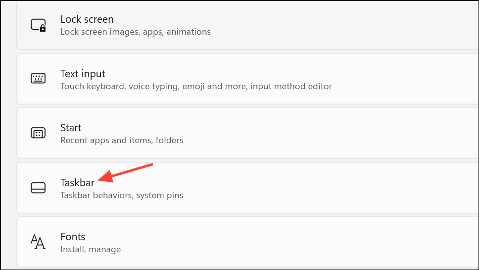 Step 3: Select Taskbar from the options on the right. This reveals all taskbar customization features.