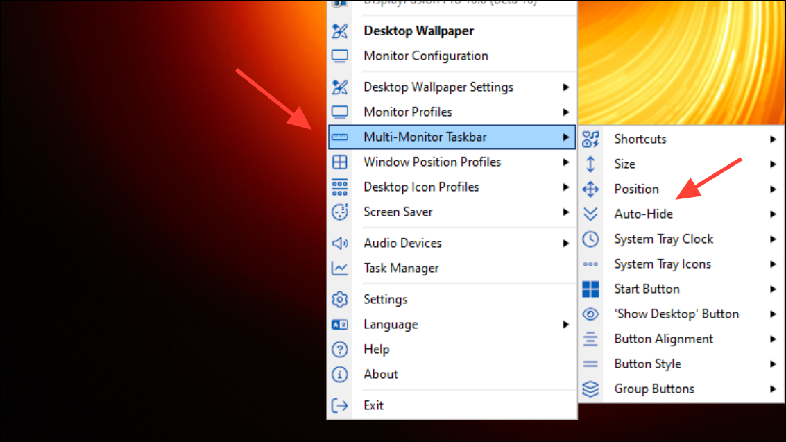 Step 3: For each monitor, right-click the taskbar and go to Multi-Monitor Taskbar > Auto-Hide > Enabled to auto-hide the taskbar on that specific screen. You can also disable the taskbar entirely on a monitor by selecting the appropriate setting.