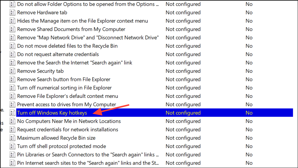 Step 3: Locate and double-click Turn off Windows Key hotkeys in the right pane.