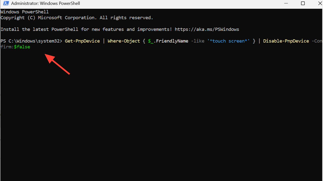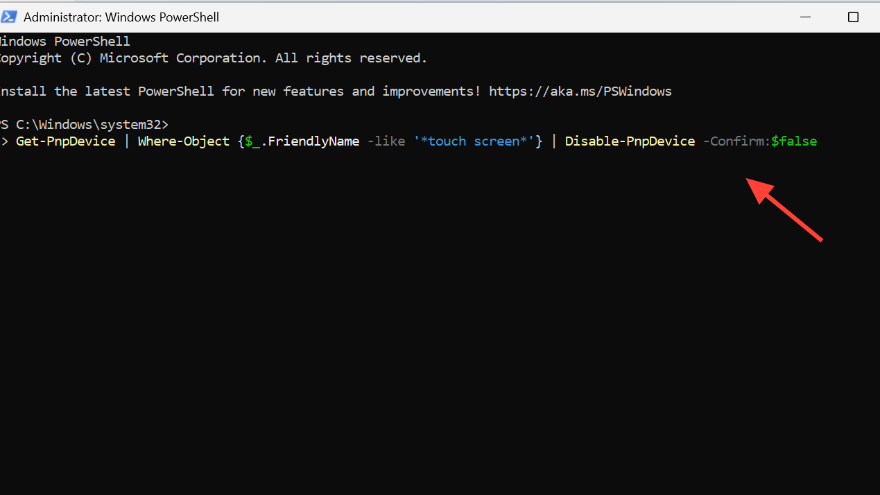 | 4 | To re-enable later, use:Get-PnpDevice -FriendlyName "HID-compliant touch screen" | Enable-PnpDevice -Confirm:$false |