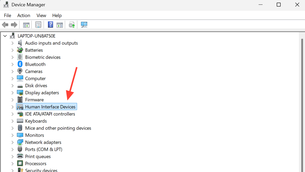 | 3 | In Device Manager, expand Human Interface Devices. | A list of HID-related devices is visible. |
