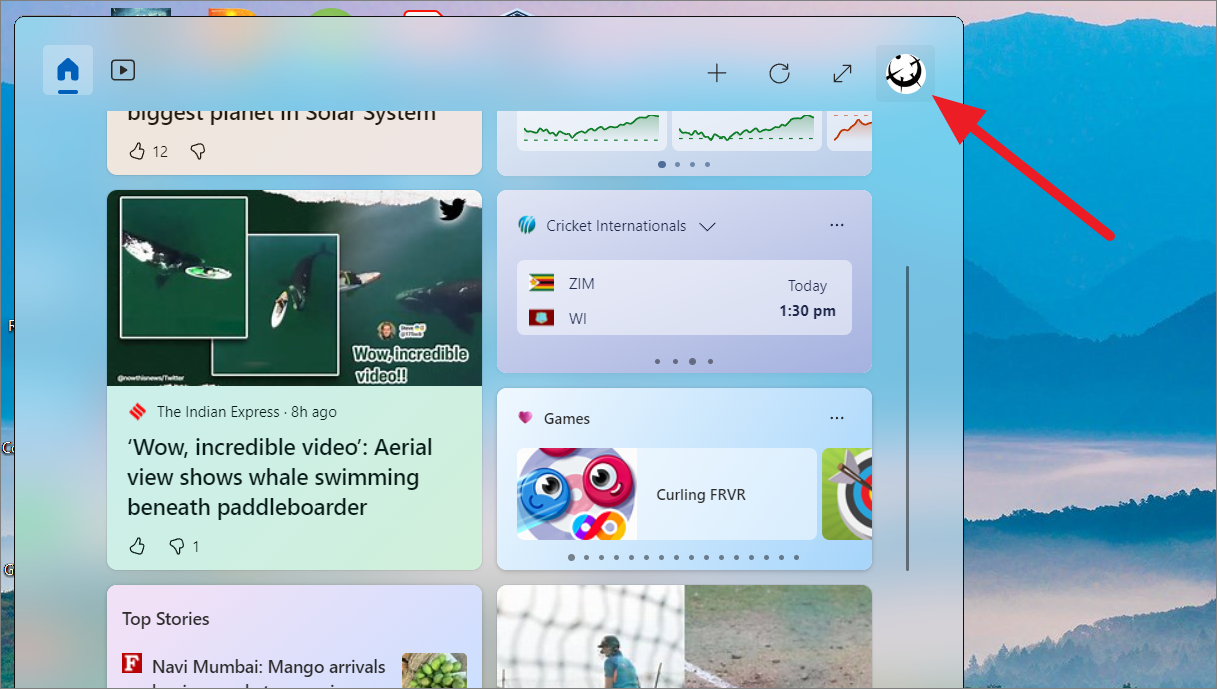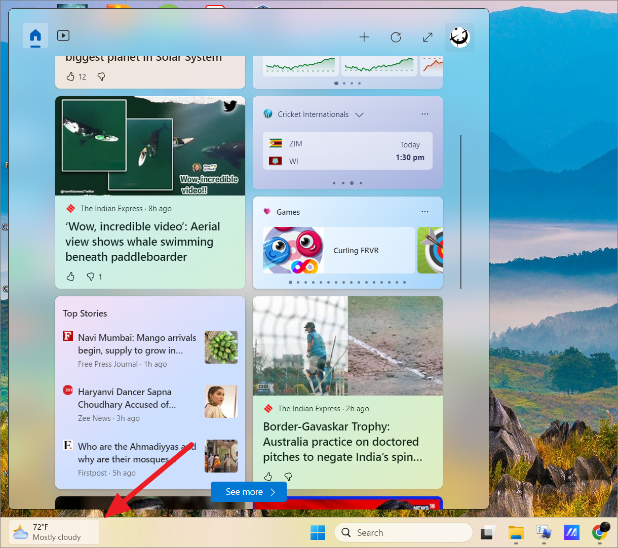 Step 1: Click on the Widgets icon in the taskbar or press Win + W to open the Widgets board.