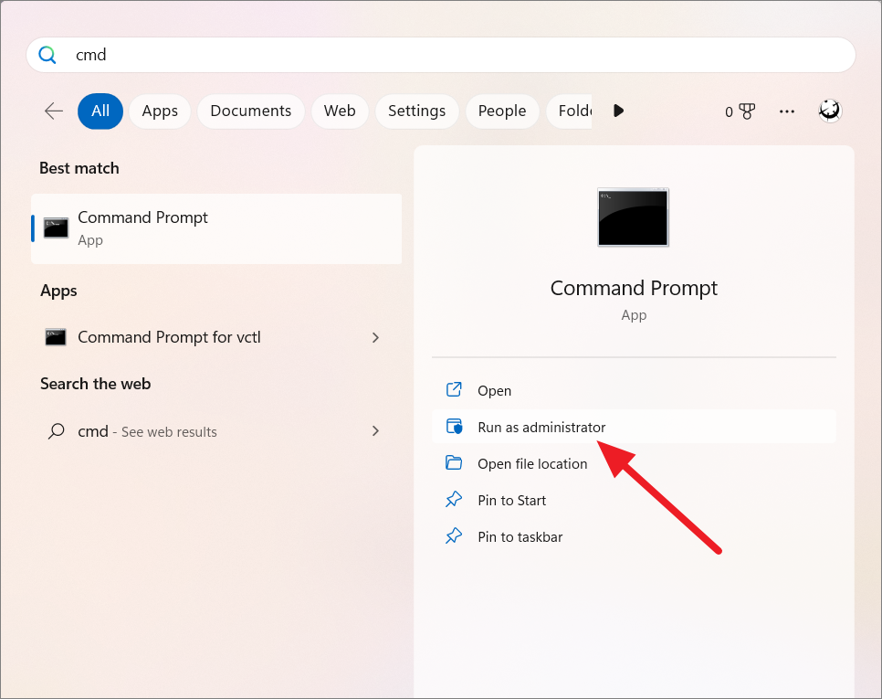 Step 1: Open Command Prompt or PowerShell as an administrator. Search for Cmd or PowerShell, right-click, and select Run as administrator.