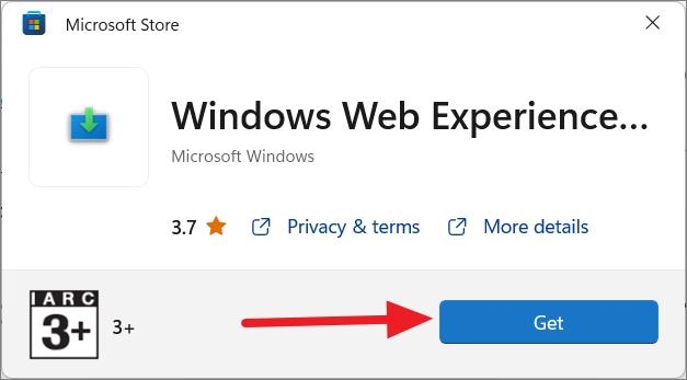 Step 4: In the Microsoft Store app, click the Get button to download and install the package.